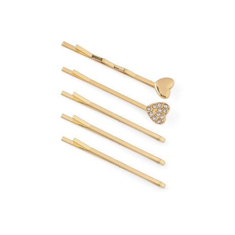 [型番:DG220103H]煌めくビジューとハートモチーフが、うしろ姿に華やぎをプラスするヘアピン。 5本セットなので、幅広いアレンジが可能です。 ※ATTENTION※ ■微細なキズや製造ムラはすべての商品に含まれます。