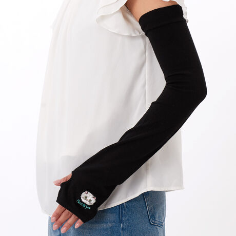 [型番:PJG660005-]ふんわり軽いレーヨン混ニットのアームカバー(指穴あり)。ポール&ジョーのアイコンねこ、ジプシーの刺繍がポイント。UVカット付き。