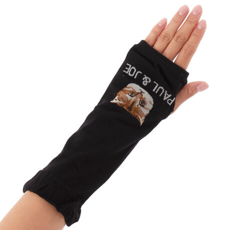 [型番:PJG660007-]ふんわり軽いレーヨン混ニットのアームカバー(指穴あり)。ポール&ジョーのアイコンねこ、ジプシーがフロントに大きく入ったかわいらしいデザイン。UVカット付き。