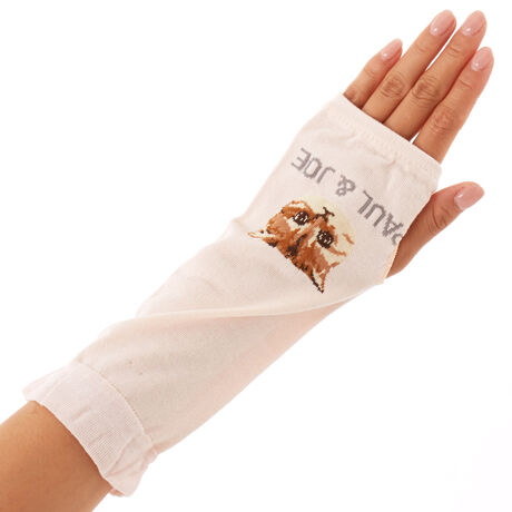 [型番:PJG660007-]ふんわり軽いレーヨン混ニットのアームカバー(指穴あり)。ポール&ジョーのアイコンねこ、ジプシーがフロントに大きく入ったかわいらしいデザイン。UVカット付き。