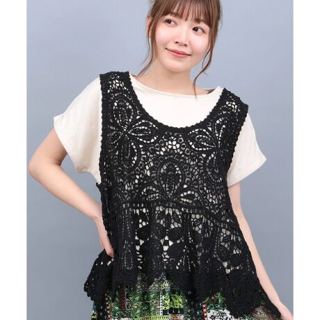 ナチュラルな風合いのコットン糸のかぎ針編み風のベスト。