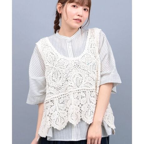 ナチュラルな風合いのコットン糸のかぎ針編み風のベスト。