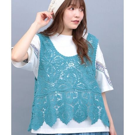 ナチュラルな風合いのコットン糸のかぎ針編み風のベスト。