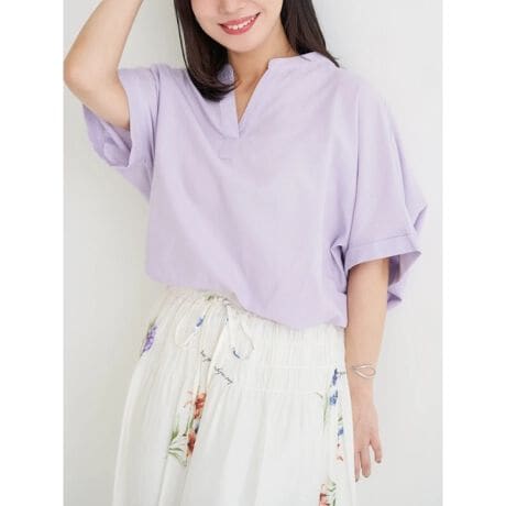 やわらかくて、さらさらな清涼感のある素材で仕立てたバンドカラーブラウス