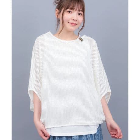 重ね着コーデがすぐに完成する、インナー付きメッシュドルマンプルオーバー。