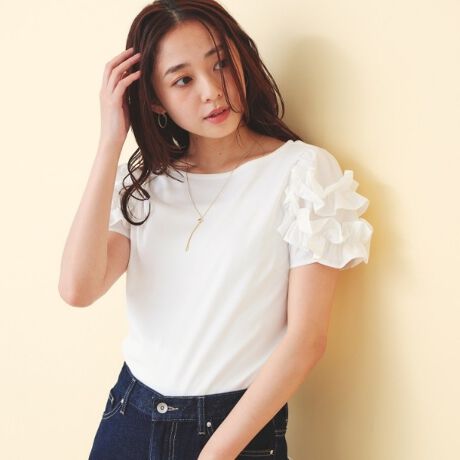 マルイウェブチャネル   /   インデックス   /   トップス   /   Tシャツ・カットソー   /   フリルドッキングスリーブTシャツ【洗濯機OK/UVケア】