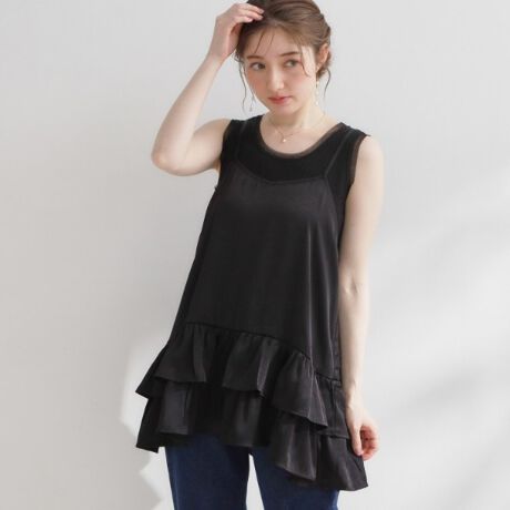 裾にあしらったフリルがポイントのデザインキャミ。
