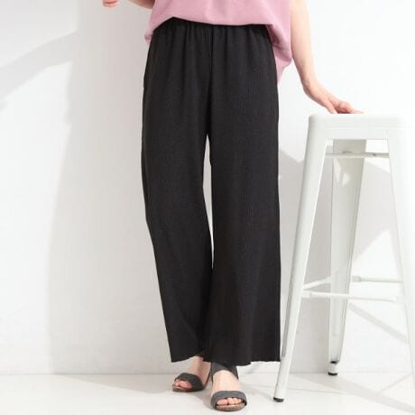 腰まわりはすっきりして裾に向かってゆるく広がるワイドストレート。