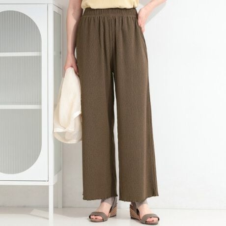 ウエストゴムで着脱らくちん、裾のメロウラインがさりげない女性らしさをプラスするデイリーユースにぴったりの一枚です。