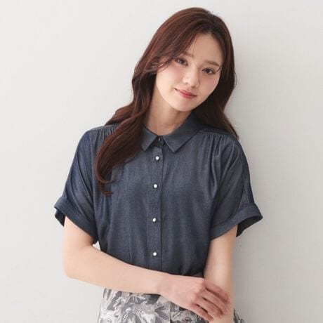 ・コンパクトな衿が顔まわりをすっきり見せ、シャツらしいきちんと感を演出。