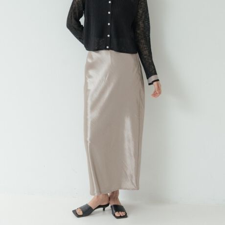 なめらかな落ち感とほどよい光沢が映える、すとんと縦に落ちるナローシルエット。