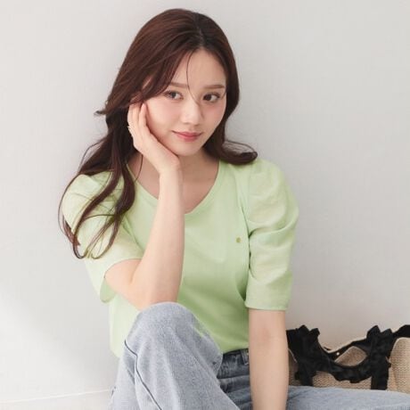 ・身頃はすっきりとしたクルーネックで、Tシャツでもきちんと感のある印象に。