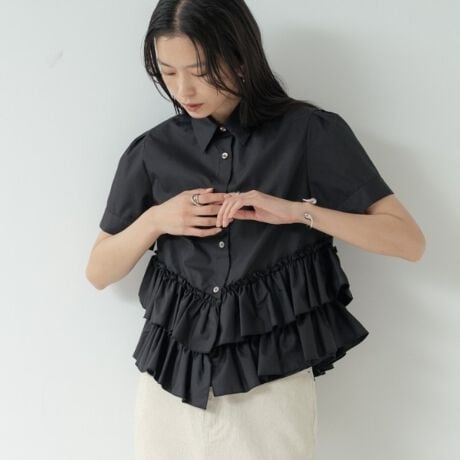 程よいハリと軽さを持つ布帛素材を使用し、フリルの立体感を美しく表現。
