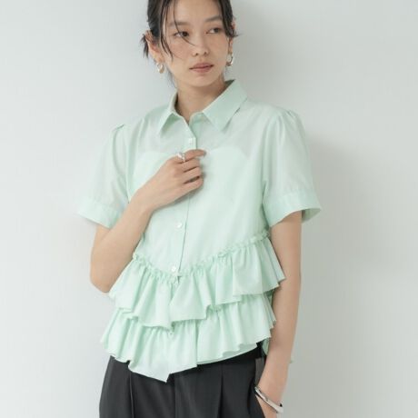 襟や裾フリルを覗かせるようにレイヤードすると効果的に表情を変えることができ、他のアイテムとの組み合わせを楽しむのも〇