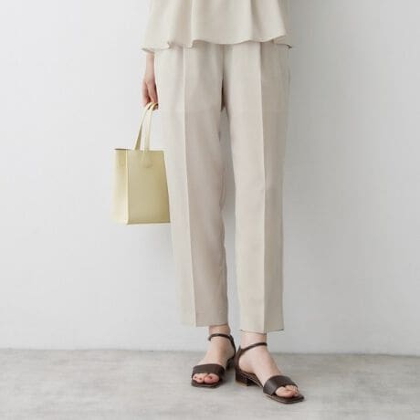 腰まわりに程よいゆとりを持たせつつ、裾にかけて細くなるラインで美脚効果を演出します。