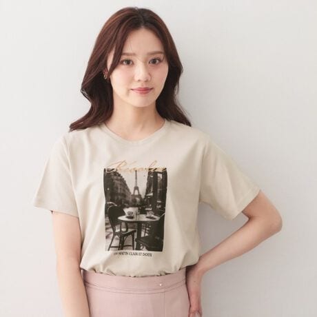・首元は開きすぎないクルーネックで、Tシャツでもきちんと感のある印象に。