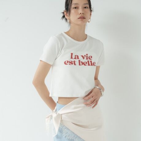 胸元のタイポグラフィが視線を集めるクルーネックT。