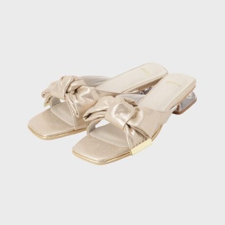 足元が華やかに映える、リボンデザインのミュールサンダル。