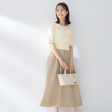 一枚で決まるニットドッキングワンピース。