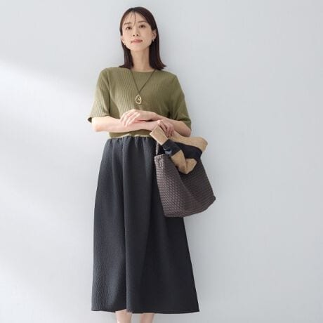 一枚で決まるニットドッキングワンピース。