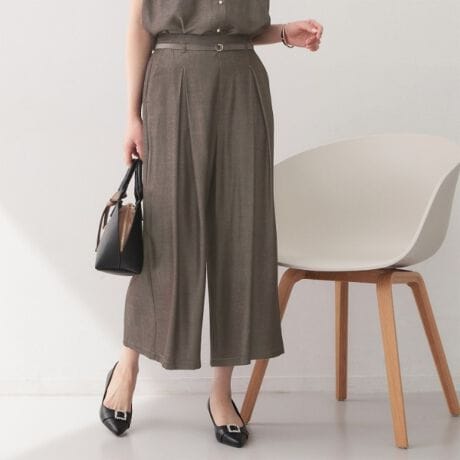 ・ウエストベルト付きの端正な仕様が、きれいめな印象を引き締める。