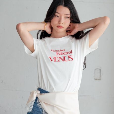 胸元のタイポグラフィが視線を集めるTシャツ。