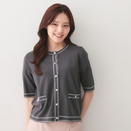 バイカラーのライン使いが新鮮な半袖カーディガン