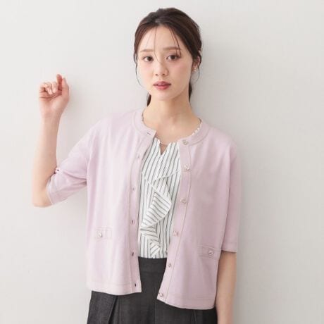 バイカラーのライン使いが新鮮な半袖カーディガン