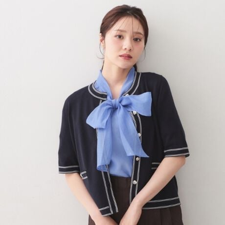 ・バイカラーのライン使いを効かせることで、清潔感のあるマリンテイストと、上品なフレンチシックな印象を両立させた半袖カーディガンです。