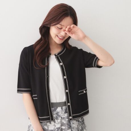 バイカラーのライン使いが新鮮な半袖カーディガン