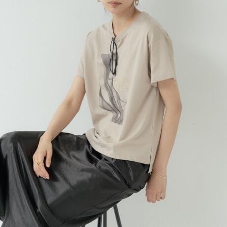 ゆったりとしたボックスシルエットとドロップショルダーで程よい抜け感を出したTシャツ。