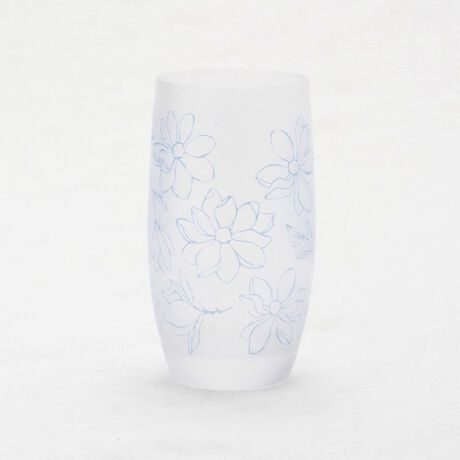 インプロ加工のキラキラした質感に、優しくふわりと描かれたお花が、気取らず使えるのにどこか特別な存在感のあるグラスです。