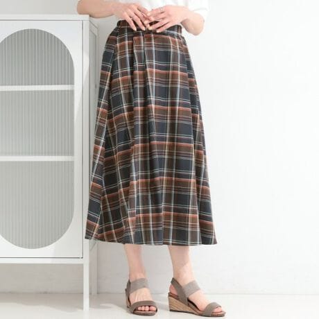 女性らしい上品さとトレンド感を両立できるチェック柄のフレアスカート。