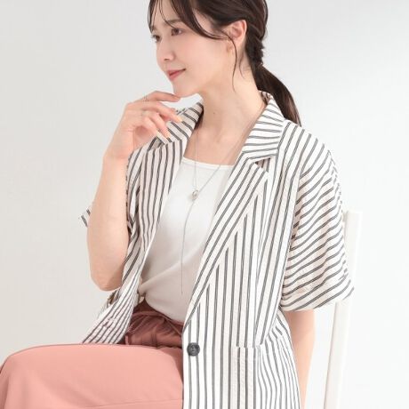 夏らしい清涼感のある素材感のセットアップで、トレンド感もあるアイテムです。