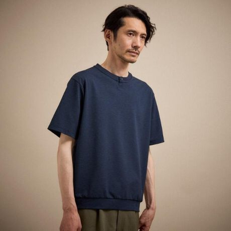 リネンライクなポリエステル糸を使用した、ドライで清涼感のあるタッチが特徴のカットソー。