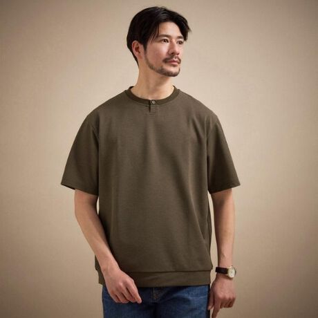 リネンライクなポリエステル糸を使用した、ドライで清涼感のあるタッチが特徴のカットソー。