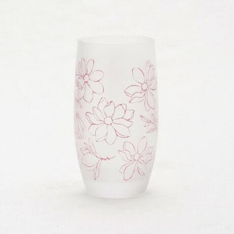 インプロ加工のキラキラした質感に、優しくふわりと描かれたお花が、気取らず使えるのにどこか特別な存在感のあるグラスです。