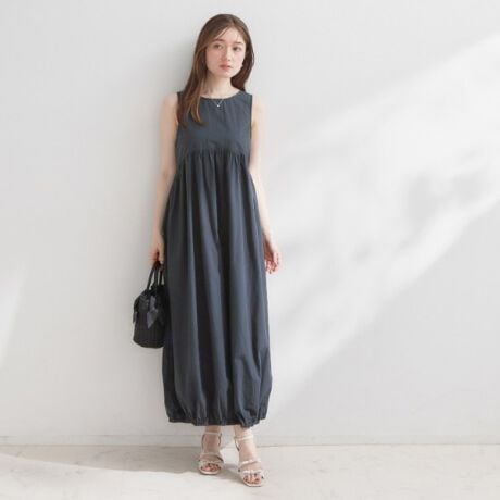 裾に向かってボリュームが出るバルーンデザインのノースリーブワンピース。
