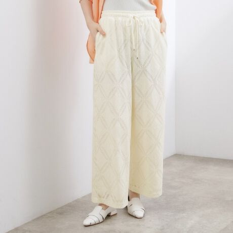 ウエストは総ゴムとドロスト仕様で、リラックス感のあるはき心地のレースイージーパンツ。