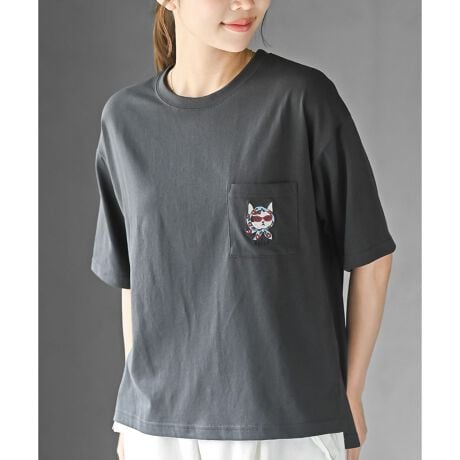 スカーフキャット刺繍ポケットT