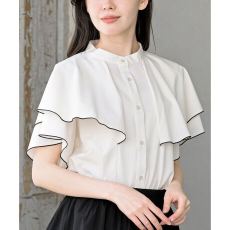 バンドカラー配色ケープブラウス