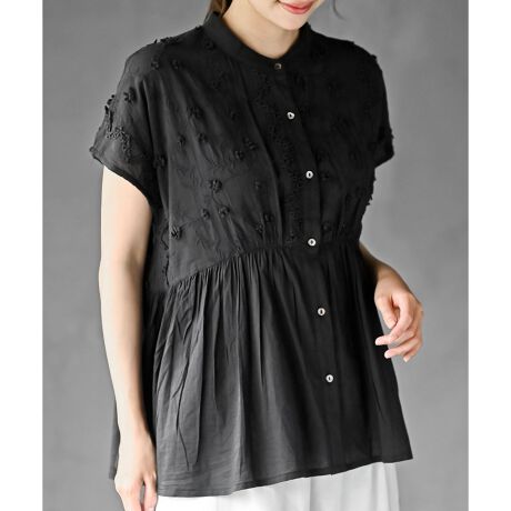 3D刺繍フレンチスリーブブラウス