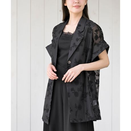 シアー総刺繍ハーフスリーブテーラードジャケット