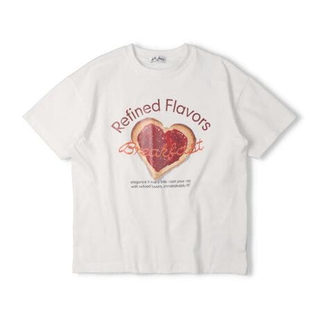 ネットショップと専門店などでの限定のアイテム!直営店では直営オンラインショップ「こどもの森e-shop」各店のみでの販売になります。【直営実店舗での販売はありません。】130〜160cmのスクールサイズ、ジュニアサイズの展開。いちごジャムがたっぷり塗られたハートの形をしたパンのリアルなプリント入り。綿100%で通学やデイリー使いにオススメな半袖Tシャツ。【アイテム】トップス カジュアル お洒落 オシャレ かっこいい かわいい 可愛い 普段着 デイリーウェア お出かけ着 お外着 お外遊び着 子ども服 こども服 キッズ トドラーサイズ 幼稚園 保育園 小学校 通園 通学 小学生 2026年春夏物新作 丸高衣料 半袖 ジュニアサイズ スクールサイズ 女児 女の子 ガールズ 中学校 中学生 高校生 修学旅行 林間学校 校外学習 遠足 ティーンズ オフホワイト 白色 ブラック 黒色 ジョリージュリー コットン100% 綿100% ブレッド