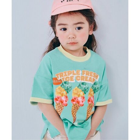 ベビーピンク・ミント:カラフルな3段アイスのプリント