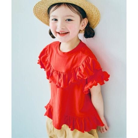 袖や裾にあしらったフリルメロウがポイントのTシャツ。