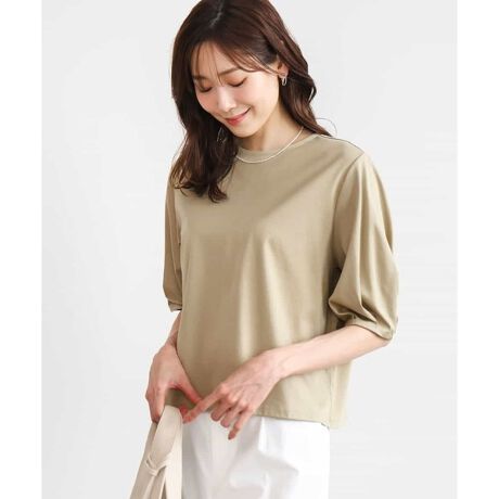 [接触冷感/洗える]シルケットスムース タックスリーブカットソー