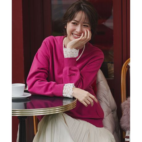 毎年ご好評いただいている、鮮やかなカラーが魅力のスウェットが今シーズンも登場!着丈を少し長めにし、気になるヒップラインを程よくカバー&袖幅をゆったりさせることでレイヤードしやすい仕様にアップデートしました。後ろ裾にはスリットを施しているので、タイトなボトムスからふんわりとしたスカートまで、様々なシルエットのアイテムとバランス良く着こなせるのが魅力です。身頃は生地の縦方向への縮みを抑えるため、地の目を横使いに仕立てていて、丈夫で長く着られるのも嬉しいポイント。さらに、左袖口にはフランス語で「Bonne journee(よい一日を)」というメッセージ刺繍をあしらい、さりげない遊び心をプラスしています。カジュアルながらも上品な印象なので、デニムやチノパンと合わせてデイリーカジュアルに、きれいめパンツやロングスカートと合わせれば、大人のリラックススタイルが完成します。ポケットが付いているのも便利で、お出かけにはもちろん、おうちでのリラックスタイムにもぴったりの一枚です。カラー違いで欲しくなる豊富なカラー展開で、ぶどう色(#080)・マスカット色(#060)・カフェオレ色(#030)、ミルク色(#001)、バナナ色(#040)、ブルーベリー色(#074)、ラベンダー色(#082)、セサミ色(#004)の全8色のライナップです。それぞれ刺繍のカラーも変えていて、ぶどう色(#080)にはボルドー、マスカット色(#060)にはグレー、カフェオレ色(#030)にはミルク、ミルク色(#001)にはレッド、バナナ色(#040)にはライトグレー、ブルーベリー色(#074)にはアイボリー、ラベンダー色(#082)にはスレート、セサミ色(#004)にはサックスの刺繍をあしらい、アクセントにしました。