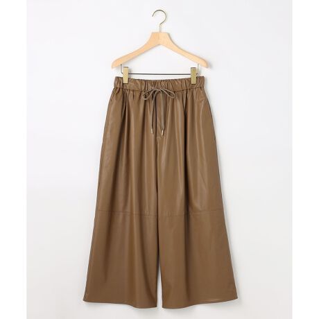 ■デザイン・立体的なシルエットが魅力のクロップド丈のフェイクレザーパンツ。・程よくワイドなボリューム感で体のラインを拾わずこなれた雰囲気に魅せるシルエット。・適度にしなやかさのある素材感で、ウエストのタックを入れることで、腰まわりを美しく際立たせ、すっきりとみせます。・ウエストはゴム仕様でイージーな着心地。ドロストコードでウエストのサイズ調整も可能です。・ドロストコードの紐先にゴールドの金具をあしらい上品な印象に仕上げています。