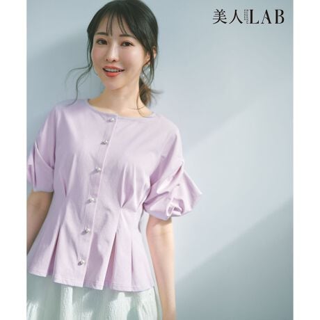 ■デザイン・即華やぐデザインを盛り込んだ、一目惚れトップス。・袖の大胆なリボンディテールは、立体的にすることで甘さを抑えモードな印象に仕上げました。・Tシャツのような気軽な着心地でありながら、ブラウスのようなきちんと感を両立。・細部までこだわったパターン設計で、美シルエットを叶えるデザイン。・すっきりとしたテーパードパンツはもちろん、ボリュームのあるスカートやワイドパンツとも相性よく合わせていただけます。・フロントに並んだパール釦が、お顔周りを上品に彩るチャームポイント。・お仕事や休日のお出かけ、会食や学校行事まで、幅広いシーンで活躍します。